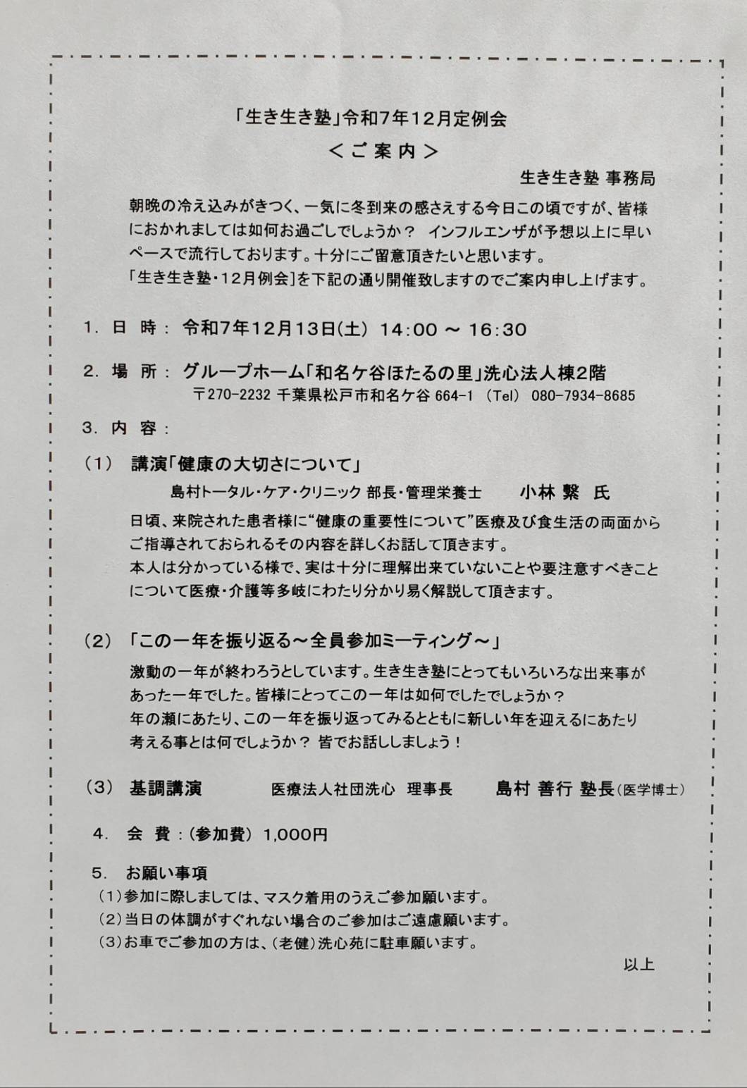 「生き生き塾」令和7年12月定例会の開催のご案内